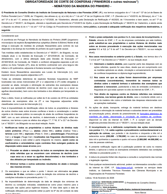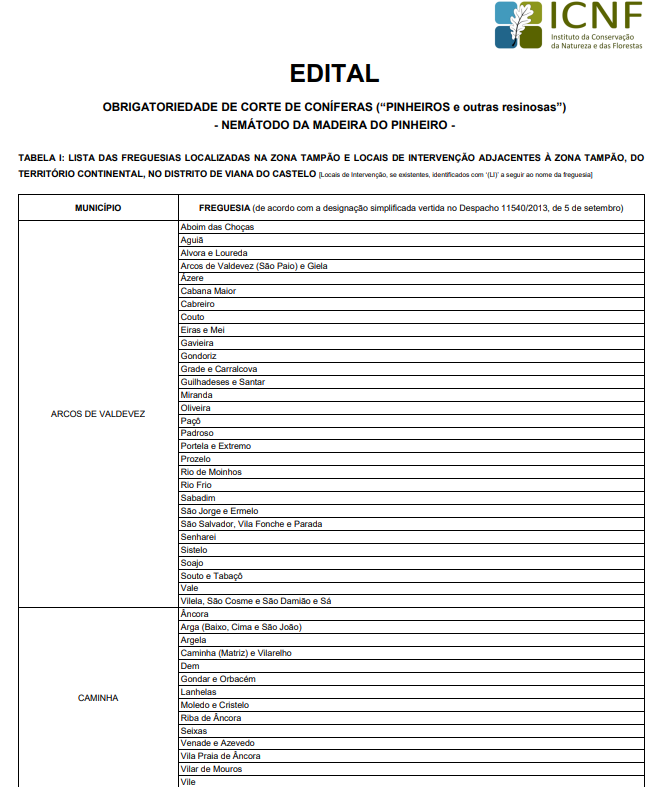 Edital - Obrigatoriedade de corte de coníferas (pinheiros e outras resinosas) com sintomas de declínio - Caminha