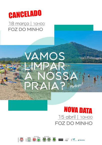 A atividade prevista para amanhã na praia da Foz do Minho, “Vamos limpar a Nossa Praia?”, foi cancelada, devido à probabilidade de condições meteorológicas adversas, e já tem nova data, irá realizar-se a 15 de abril, às 10h00.Saiba mais em https://www.cm-caminha.pt/pages/1281?news_id=2885